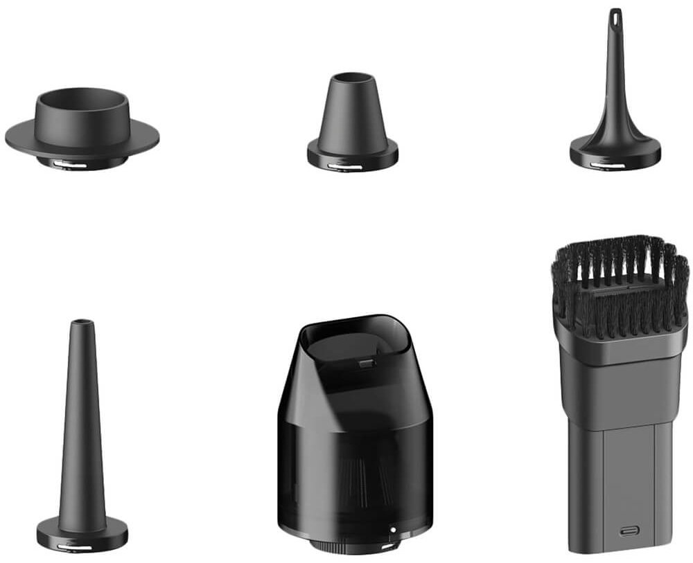 Модель поддерживает не только всасывание, но и функции насоса и вакуумной герметизации. В комплект входят насадки для уборки, продувки, надувания и вакуумных пакетов. Такой набор делает устройство универсальным — от ухода за электроникой до упаковки вещей и надувания аксессуаров. Контейнер для пыли небольшой, на 40 мл, но он моющийся, как и фильтр тонкой очистки.