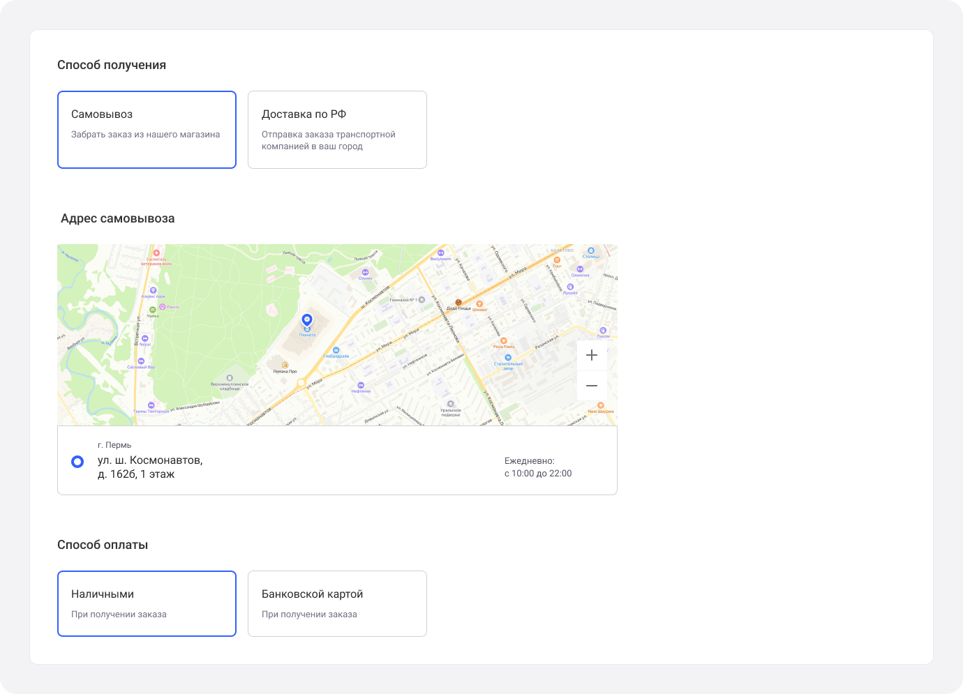 4. Выберите способ получения и способ оплаты